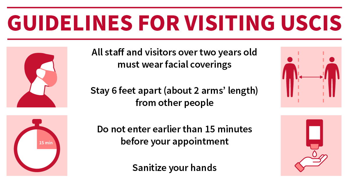 지난 6월 4일부터 이민국의 Field offices들이 다시 face-to-face services를 시작하였습니다. Face-to-face services에는 케이스 진행에 필수적인 지문 채취와 인터뷰가 포함되어 있고 Face-to-face services가 코로나로 중단된 여러 달 동안 케이스가 지연되는 문제 외에도 이민국의 서비스가 필요한 많은 분들이 어려움을 겪었습니다. 이민국이 비록 face-to-face services를 다시 시작했지만 코로나가 해결된 것이 아니기 때문에 이민국은 이민국을 방문하는 사람들과 이민국 직원들의 안전을 위한 이민국 방문시 유의사항을 공지하였습니다.
