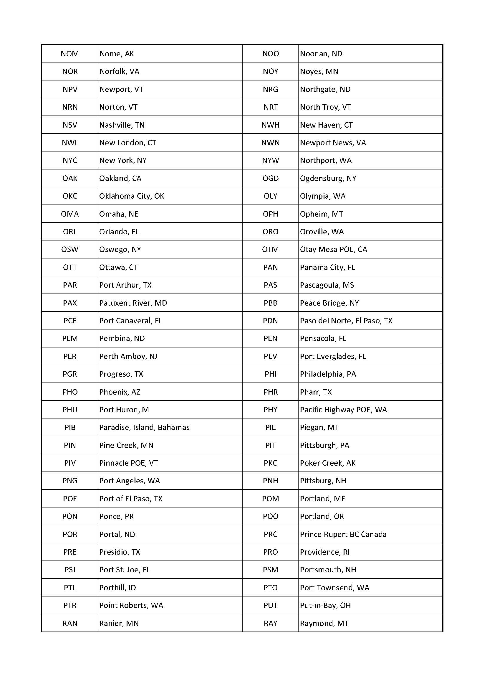 이는 미국에 입국하실 때 사용한 미국의 입국항의 위치나 국경 검문소를 나타냅니다.