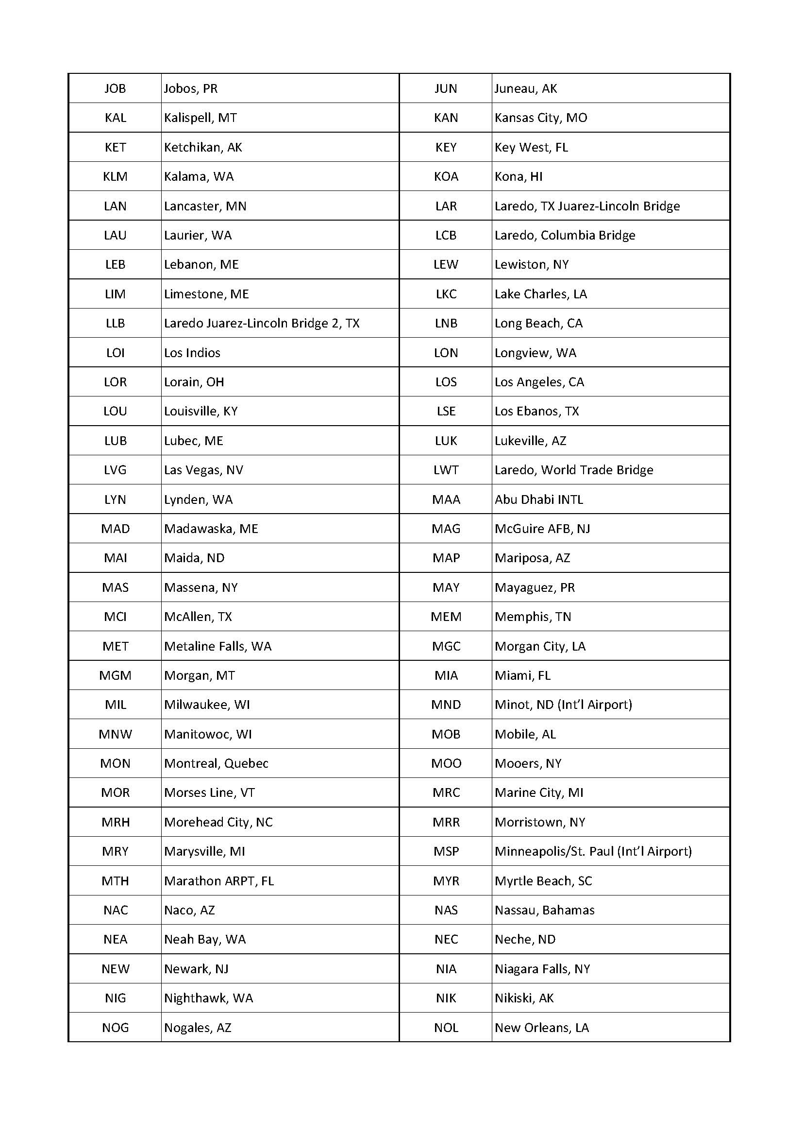 아래에서 CBP 코드의 전체 목록을 확인하실 수 있도록 공유해 드립니다.